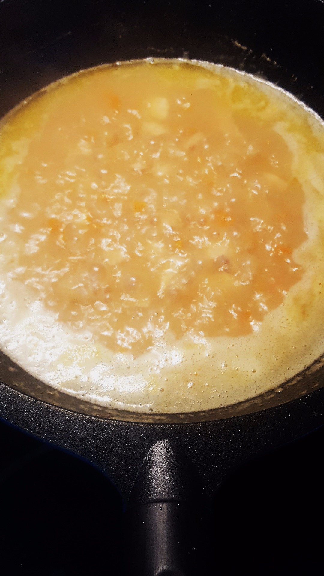 Como veréis la salsa queda totalmente liquida, asi que se le agrega un par de cucharadas soperas de el espesante, (es muy fácil de encontrar el cualquier supermercado, zona de la harina), removemos constantemente para que no se pegue y cuando tenga el espesor que os guste, se apaga el fuego y retiramos.